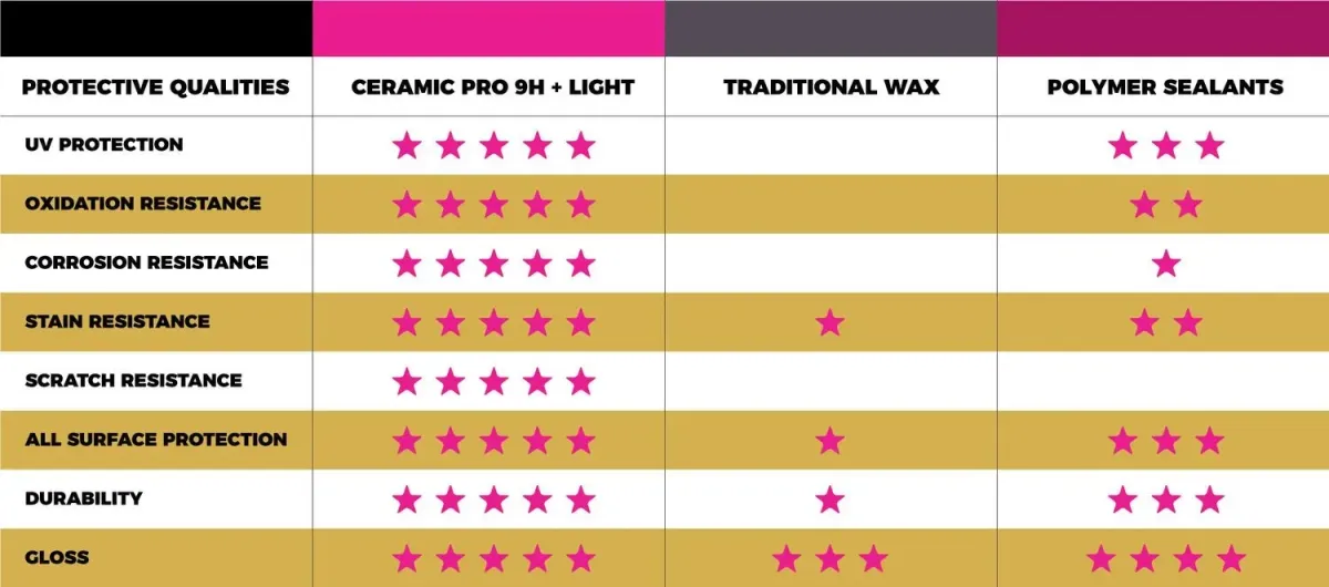 Ceramic Pro forms a permanent bond with the surface and will not wash off or break down. The thickness of the coating can be increased with additional layers for improved protection and a thicker/harder coating.